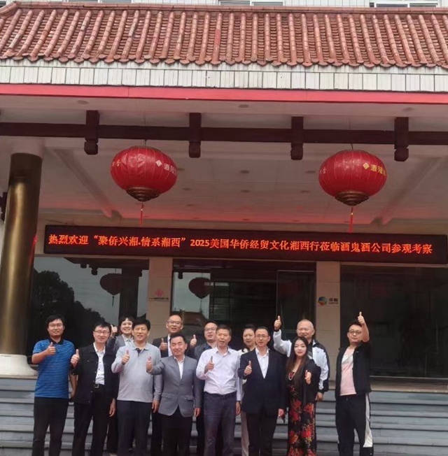 (2025年美国华侨经贸文化湘西行考察团成员莅临酒鬼酒集团合影)